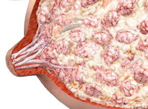 Να σημειωθεί τέλος ότι οι περισσότερες παθολογικές καταστάσεις αναπτύσσονται στην λοβιακή μονάδα στο εκκριτικό δηλαδή μέρος του μαστού, και μόνο ελάχιστες από αυτές, όπως π.χ. τα θηλώματα, αναπτύσσονται στο σύστημα των μεγάλων εκφορητικών πόρων. Είναι εντυπωσιακό ότι τα αδενικά στοιχεία, οι λοβοί δηλαδή, αποτελούν περίπου το 10% του ώριμου μαστού, ενώ το υπόλοιπο ποσοστό είναι συνδετικός ιστός και λίπος.