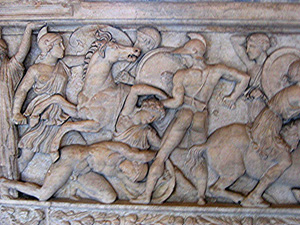 Αμαζονομαχία μεταξύ Ελλήνων και Αμαζόνων από ανάγλυφο σαρκοφάγου. |